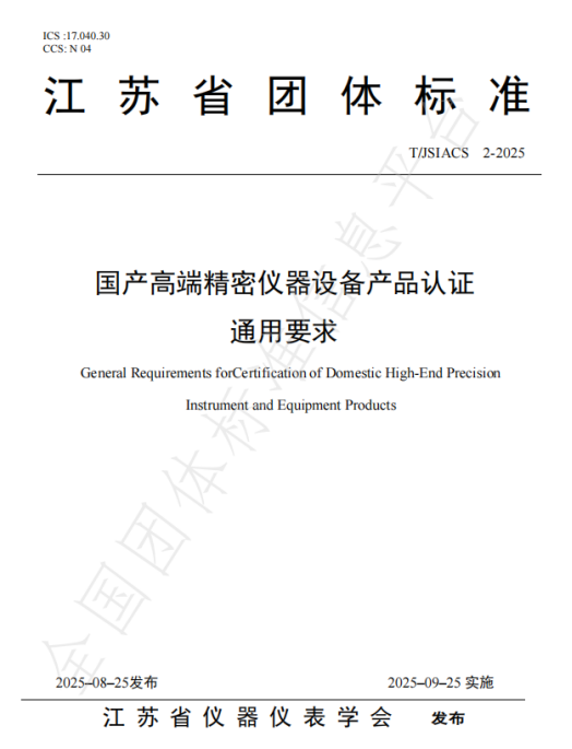 近日,江蘇省儀器儀表學會正式批準發布團體標準《國產高端精密儀器設備產品認證通用要求》(標準編號:T/JSIACS 2 - 2025)。該標準嚴格依據《江蘇省儀器儀表學會標準管理辦法(試行)》制定,圍繞國產高端精密儀器設備產品認證,在基本要求、國產化要求、品質屬性等關鍵維度作出明確規范,適用于國產高端精密儀器設備產品的通用認證場景。